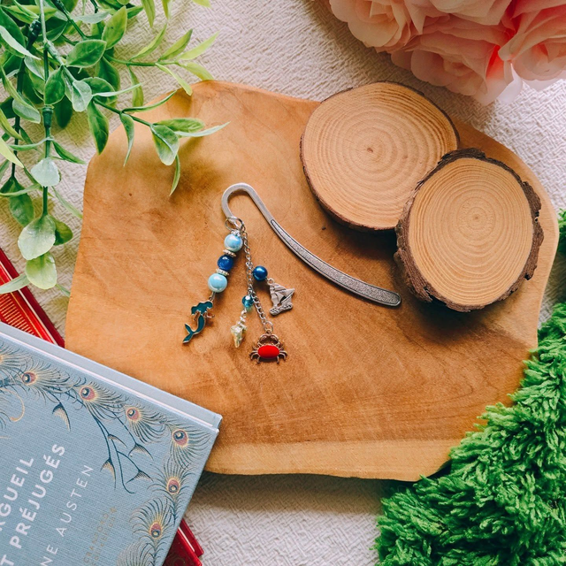 Délicatement décoré de perles, ce marque-pages apporte une touche de poésie à vos lectures et accompagne vos moments de détente au fil des pages.