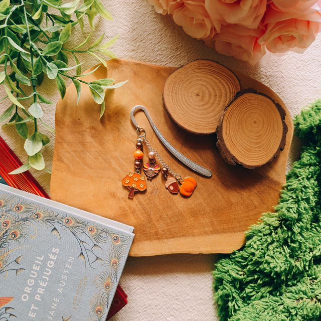 Délicatement décoré de perles, ce marque-pages apporte une touche de poésie à vos lectures et accompagne vos moments de détente au fil des pages.