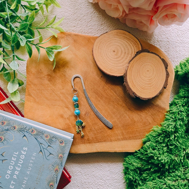 Délicatement décoré de perles, ce marque-pages apporte une touche de poésie à vos lectures et accompagne vos moments de détente au fil des pages.
