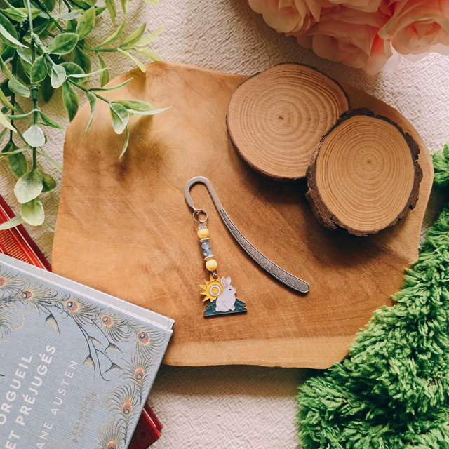 Délicatement décoré de perles, ce marque-pages apporte une touche de poésie à vos lectures et accompagne vos moments de détente au fil des pages.