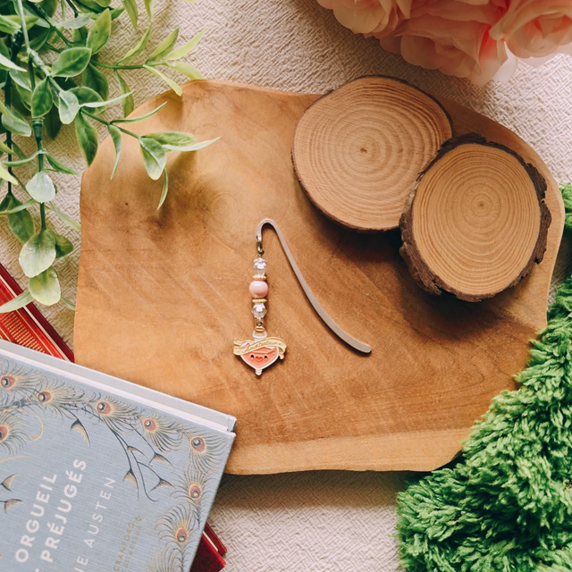 Délicatement décoré de perles, ce marque-pages apporte une touche de poésie à vos lectures et accompagne vos moments de détente au fil des pages.
