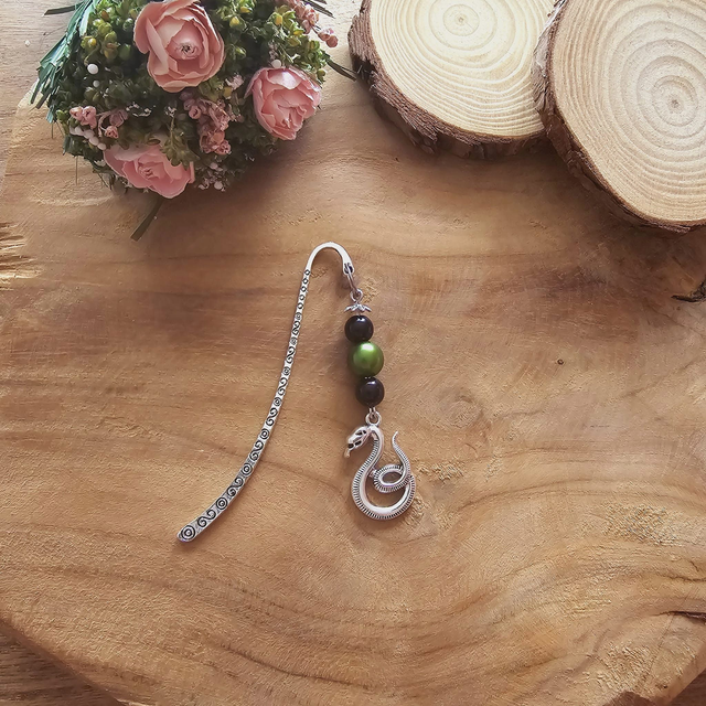 Marque-pages décoré de perles et d'un pendentif en forme de serpent